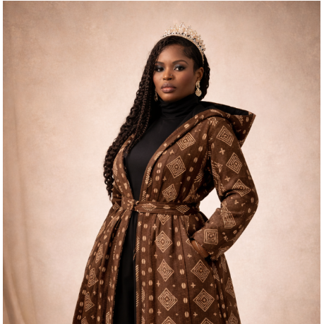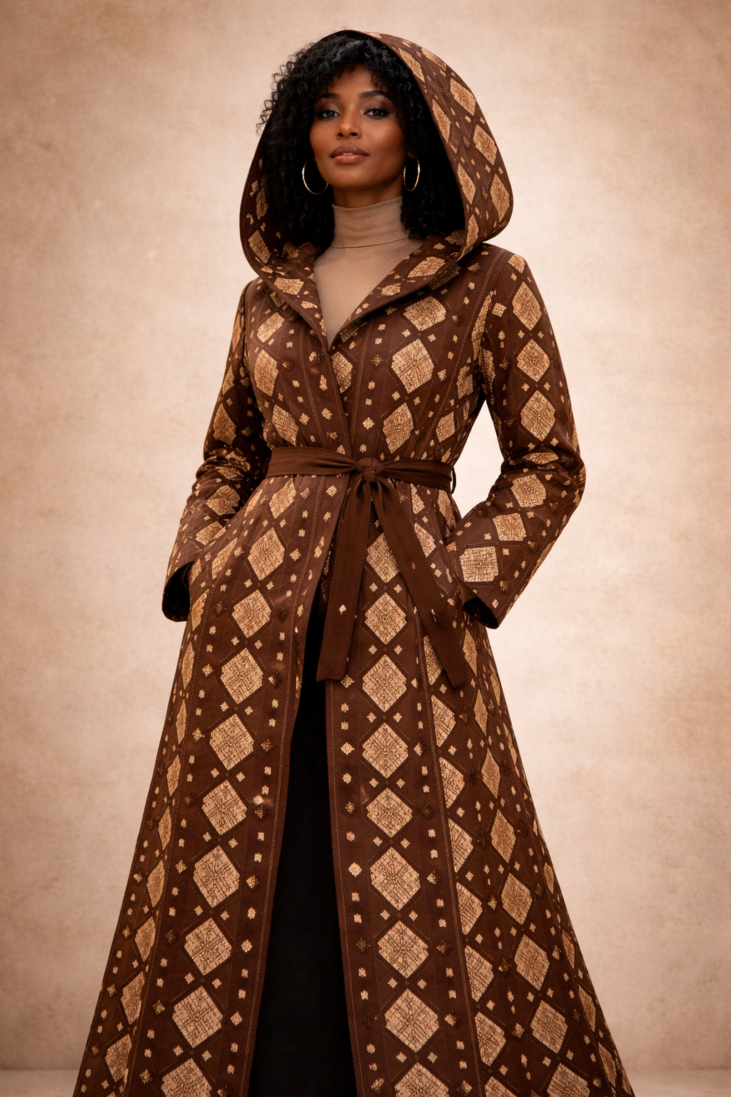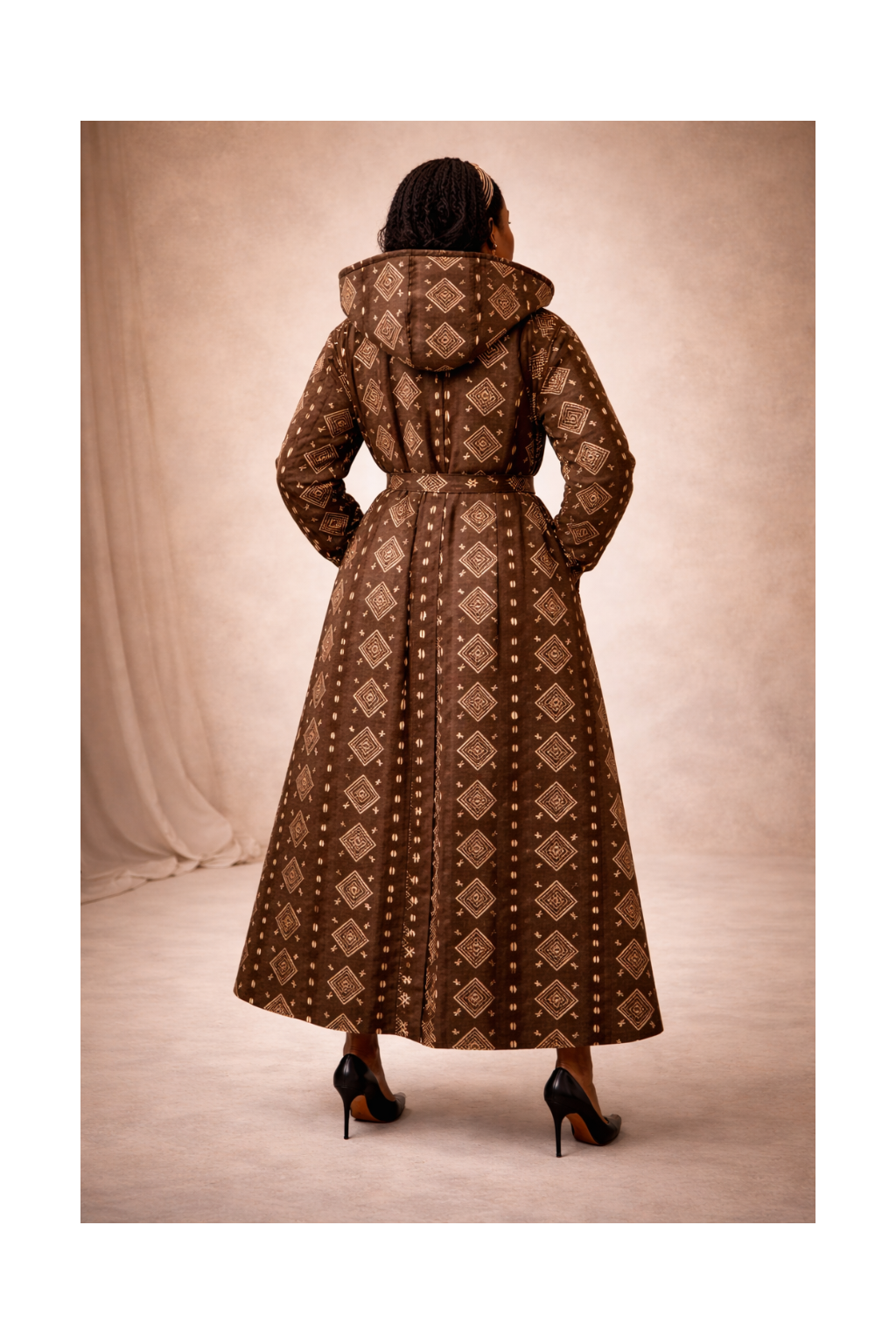 🧥 Manteau long à capuche en Bogolan artisanal – Unisexe