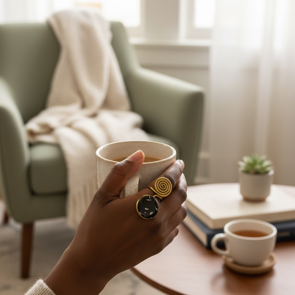 La bague Nafi incarne l’équilibre, la force intérieure et l’ancrage.