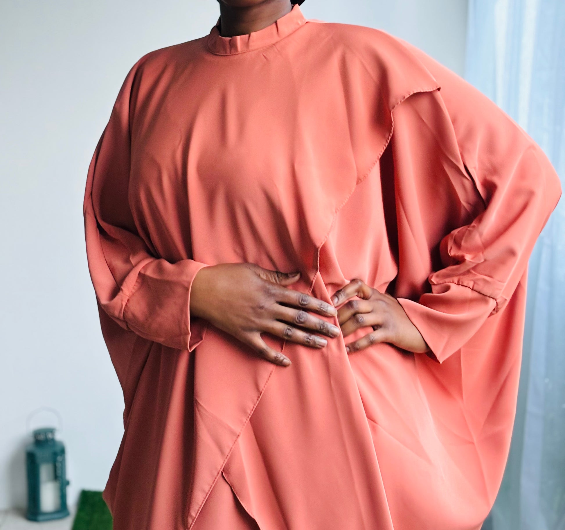 L'ensemble « AMINAH » en soie de Médine comprend une robe sans manches et un haut croisé sur le devant avec un col montant. Il est idéal pour être porté avec une robe ou un haut de couleur différente pour créer des combinaisons uniques et élégantes.