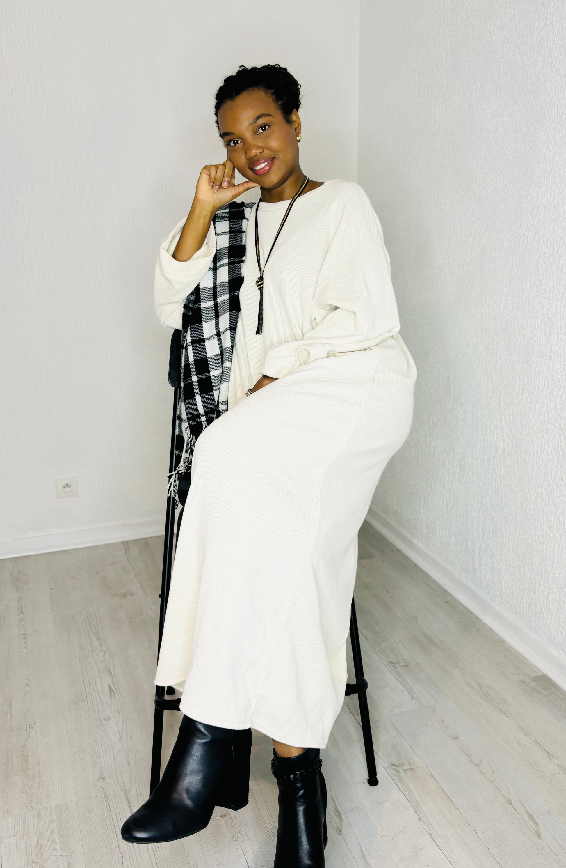 La robe Amélie en velours côtelé est conçue pour les femmes jusqu’à 1m70. Elle offre une coupe longue fluide, des manches oversize modernes, et une texture chaleureuse. Idéale pour un look élégant en toutes saisons, elle peut être portée seule pour un style décontracté ou accessoirisée pour une allure plus structurée.